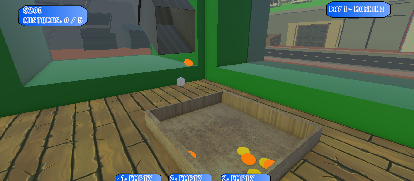 I created a very simple game about working in a mint and taking three different types of coins and depositing them into the correct bins.